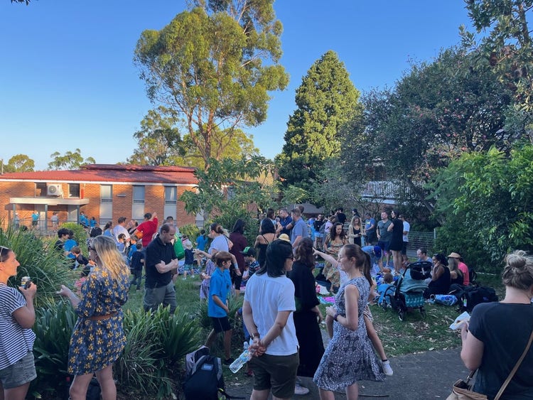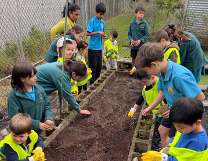 Students participating in the environmental conservation Powerful Project on our large school oval.