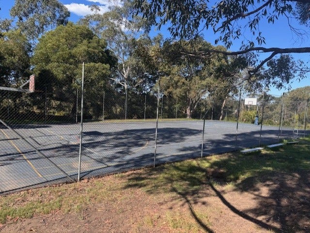 Our much loved multipurpose court, with tennis court markings and basketball and netball rings